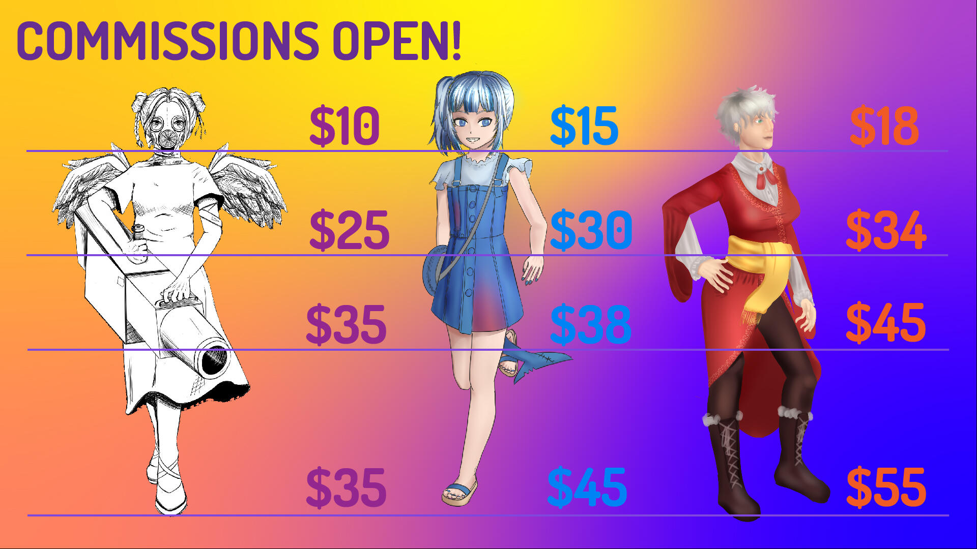 - Currently no restriction on a type of character that can be commissioned. Non-humanoid characters, complex designs and NSFW are allowed.